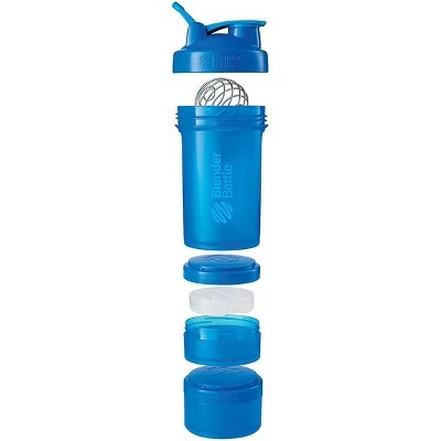 The Blender Bottle ProStak 22 oz. Shaker with Loop Top offers total convenience with a fortified protein shake and an attached compartment for supplements! 22 ounce BlenderBottle for liquid shakes. ProStak system for storage of powders, pills and supplements including 150 and 100 cubic centimeter jars. Interlocking jars can be used with or without the bottle. Leak-proof sure seal flip cap and a secure screw-on lid and loop top. BPA and phthalate free. Why the Whisk Ball? Unlike stationary mesh grates or other in-lid elements, the BlenderBall whips around inside the bottle as you shake. The BlenderBall is springy and bounces off both the top and the bottom of the bottle, working against the liquids. Made from electropolished 316 grade stainless steel, the same material used in surgical instruments and implants. Add ingredients like peanut butter, applesauce or yogurt to your protein or meal-replacement shakes for added flavor – the BlenderBall whips them in with ease. The BlenderBall will never rust, chip or peel. Every BlenderBall is manufactured using a unique multistage process designed to ensure safety, quality, and longevity.