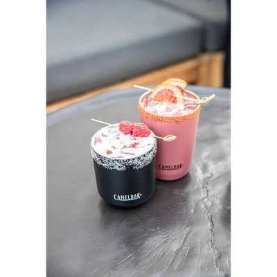 Make it a double with the CamelBak Horizon double-walled 10 oz Rocks Tumbler. Don’t worry about your cocktail losing its cool for a whole 5 hours, thanks to the vacuum-insulated stainless steel that keeps everything at the ideal temperature. You gotta feel it to believe it with our full powder coat finish, durable enough to go from backyard deck to dishwasher. The tri-mode lid slides open to suit your sip and is spill-resistant when closed. A non-slip silicone base seals the deal and grips surfaces to avoid scratches and accidents. Free of BPA, BPS, and BPF.