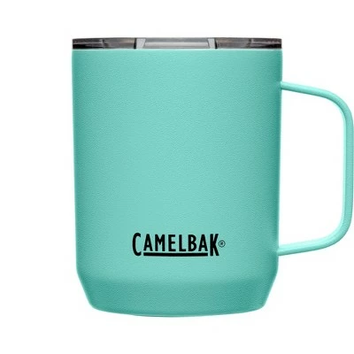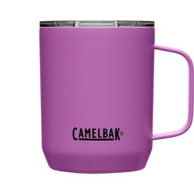 Your ultimate outdoor wingman. The strong and durable CamelBak Horizon 12 oz Camp Mug is constructed in double-walled, vacuum-insulated stainless steel with a powder coat finish, keeping it looking good on the outside and at piping hot on the inside. The tri-mode tumbler lid slides open for flow control and is spill-resistant. A non-slip silicone pad on the base provides a soft landing on surfaces to avoid scratches and spills. Dishwasher safe and free of BPA, BPS, and BPF.
