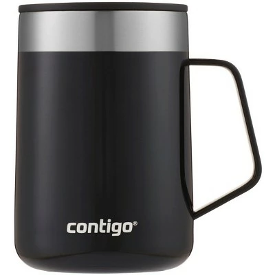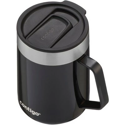 The Contigo 14 oz. Streeterville Vacuum Insulated Stainless Steel Mug combines the convenience of drinks that stay hot or cold for hours with a sophisticated design in eye-catching metallic colors. This mug is perfect for sipping coffee while working or on a short walk around the neighborhood. The comfortable handle makes drinking your favorite beverages more enjoyable and the splash-proof lid keeps your drink inside the mug when closed. Wherever you are, the non-slip grip base helps prevent the mug from slipping, clanking or scratching on surfaces. The mug conveniently fits under most single-serve brewers. Lid and body are top-rack dishwasher-safe for easy cleaning. BPA-free. Drinks stay hot for up to 5 hours and cold for up to 15 hours.
