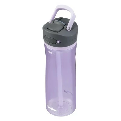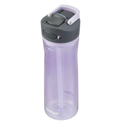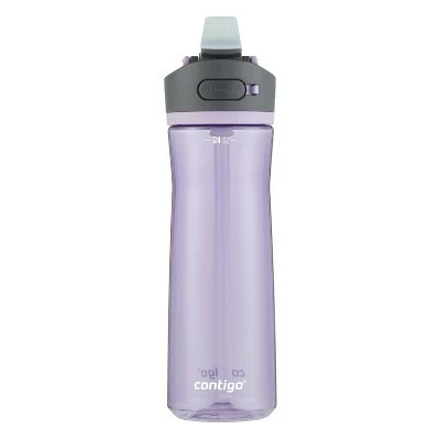 Push, sip, and press your way to better hydration. The Contigo AUTOSPOUT Tritan Water Bottle features push-button technology for easy one-handed drinking. The leakproof lid means less mess wherever you go, and the spout cover helps to protect the spout from dirt and grime so you can drink confidently. Carrying it around is easy with the integrated handle that swings up and sets back down to stay out of the way. Sip every last drop with the angled pop-up straw that fits securely into the lid. The lid and 100% BPA-free body is top-rack dishwasher-safe for easy cleanups. Fits most car cup holders.