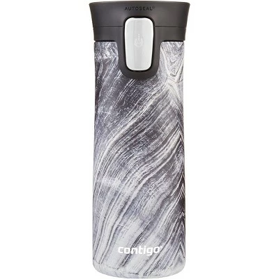 With its tasteful full-body graphics, the Contigo Couture 14 oz. Autoseal Vacuum Insulated Stainless Steel Travel Mug is functional fashion at its best. A leak and spill proof lid makes this thermal mug the go-to drinkware for your busy lifestyle. Enjoy one-handed convenience without the spills. Simply push the Autoseal button to drink and release it to seal after every sip. A lock ensures the button isn’t accidentally pushed during transit. Plus, with Thermalock double-wall vacuum insulation, your coffee stays piping hot for up to 5 hours or icy cold for up to 12 hours. The underside of the innovative BPA-free lid opens completely for thorough cleaning and is one connected piece so there are no parts to misplace. For best results, remember to hand-wash lid and body and allow the mug to dry completely with the lid off. Designed to fit in most cup holders and under most single-serve brewers.