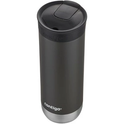 The Contigo Huron 2.0 SnapSeal Insulated Stainless Steel Travel Mug keeps drinks at their ideal temperature for hours thanks to Thermalock double-wall vacuum insulation. The 16 oz. keeps drinks hot for up to 6 hours and cold for up to 12. The 20 oz. keeps drinks hot for up to 7 hours and cold for up to 18. The one-piece SnapSeal lid allows for one-handed drinking with no lids or caps to remove or misplace and is leak-proof when closed. Available in 16 oz. and 20 oz. capacity. Fits car cup holders and under most single-serve brewers. Top rack dishwasher-safe lid, handwash body.