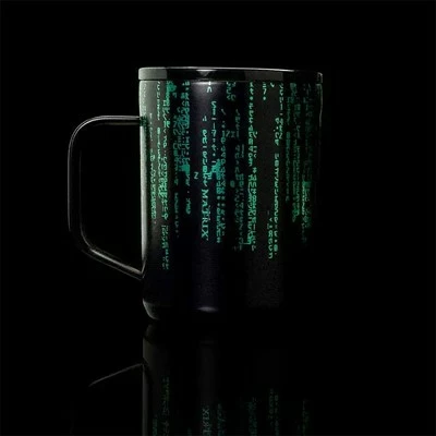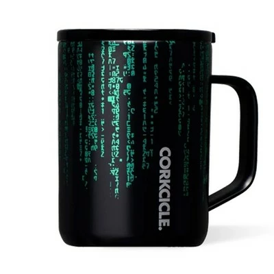If keeping caffeinated throughout the day is one of your top priorities, you’ll love the Corkcicle 16 Ounce Matrix Stainless Steel Triple Insulated Coffee Mug with Lid.Free your mind with this Matrix-inspired mug, great for the at-home office, Sunday morning coffee, or weekday iced pick-me-up beverage. With a triple insulated lining, this stainless steel mug ensures your beverages stay extra-hot or icy-cold. And no matter how bumpy the ride gets in the Nebuchadnezzar, the slip-proof silicone base will keep your beverage in place.The clear, sliding lid provides peace of mind, durability, and easy access to sipping and savoring your favorite beverage, expertly staying in place so you can take it wherever you go. Whether headed to the office, taking a leisurely stroll, or fighting a techno-robotic uprising, the easy-grip handle, and durable design, make this mug as comfortable as it is fun.Keep your thirst quenched wherever you go. Get movin’, stay groovin’, and keep one step ahead of the sentinels with the 16 Ounce Matrix Stainless Steel Triple Insulated Coffee Mug with Lid from Corkcicle.