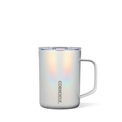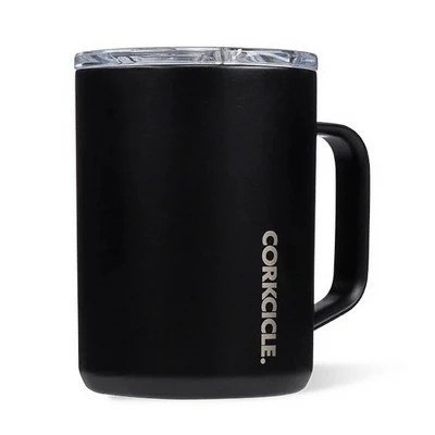 Perfect for the “early bird,” the 16 Ounce Coffee Mug makes every day something to celebrate. Whether you’re caffeinating with a hot cup of coffee or cozying up with some chamomile tea, this stainless steel keeps every sip piping hot for up to 3 hours in style. For effortless on-the-go sipping, this durable stainless steel mug transports 16 ounces of your preferred beverage. A shatter-proof, crystal clear lid easily slides open when you’re ready to take a swig and closed when you’re out and about. With ergonomic, easy-grip flat sides, this comfort-fit mug is a true treat to hold, begging to stay in your hand until empty. Stop spills in their tracks thanks to the stay-put silicone bottom, and easily remove the silicone band in your lid for quick dishwasher cleaning.Enjoy your early morning coffee, late evening tea, and everything in between with the Corkcicle 16 Ounce Coffee Mug.