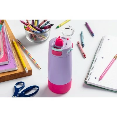 The Ello Colby 12-ounce vacuum insulated stainless steel kids water bottle is built to last. A silicone boot acts as a built-in coaster and protects the bottle from dings and dents. Hydrate safely with an FDA food grade silicone straw that includes Guardian Technology that keeps the drink surface clean. Vacuum insulated stainless steel keeps beverages cold for hours. Colby’s leak-proof locking flip lid features a fully-covered and yuck-free straw that minimizes spills. Take it on-the-go with a built-in soft touch carry loop. All parts certified BPA free. Hand wash bottle recommended, lid and straw are dishwasher safe. Do not microwave or freeze. Intended for use with cold beverages only.