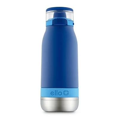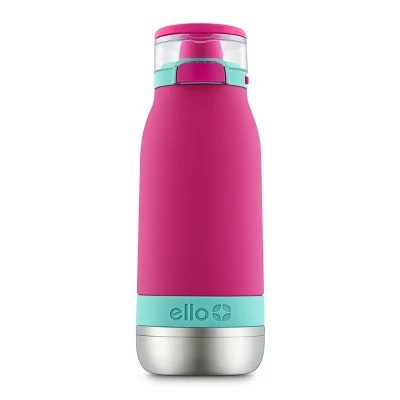 The Ello Emma 14-ounce vacuum insulated stainless steel kids water bottle keeps your little ones hydrated with cold-staying power. Vacuum insulated 18/8 stainless steel keeps beverages cold for 14+ hours. Emma’s leak-proof locking flip lid features an XL push button for smaller hands and a fully-covered and yuck-free straw that minimizes spills. A built-in carry loop makes it super easy to stay hydrated on-the-go. All Ello Kids products feature an FDA food-grade silicone spout with antimicrobial Guardian Technology that inhibits bacterial growth on the drink surface. All parts certified BPA free. Hand wash bottle recommended, lid and straw are dishwasher safe. Do not microwave or freeze. Intended for use with cold beverages only.