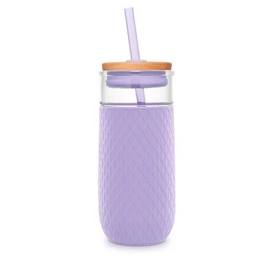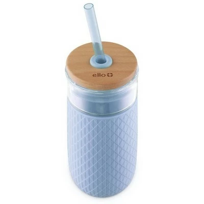 Whether you drink smoothies, iced tea, juices, or water, everything tastes better in glass! The Ello Devon 18 ounce glass tumbler with straw is designed for enjoying your favorite beverage on-the-go. A silicone sleeve provides a no-slip grip, reduces condensation and protects tabletops. Devon’s friction fit real wood lid prevents splashes for on-the-go.