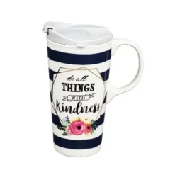 - Travel mug holds up to 17 oz. of hot or cold liquid.