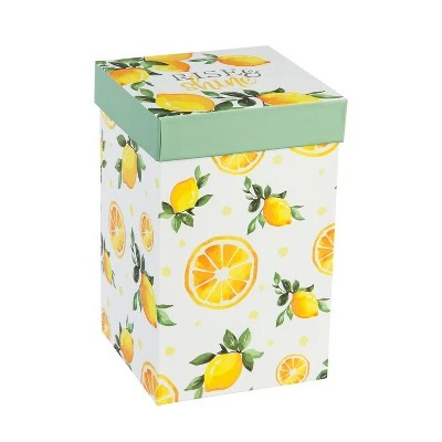 This 17 oz. white ceramic travel cup comes with a slide closure Tritan lid and a matching gift box. It has a black handle. It features lemons and reads: “Rise & Shine”. Microwave & dishwasher safe, remove top. At Evergreen, we are committed to producing premium, quality products to bring a touch of color and personality to your home. We respect and celebrate the uniqueness in everyone by offering one of the world’s largest selections of home and garden decor.