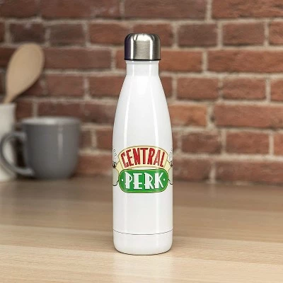 Reminisce on your favorite TV show with this Friends water bottle! Featuring the iconic Central Perk logo from Friends, this mug is sure to make any fan of the series smile. Strong metal water bottle holds 16 ounces, has a leak-proof top and a classic design. Hand wash only. Not dishwasher safe. Do not microwave.