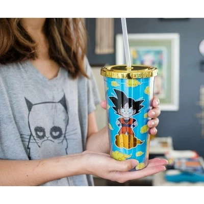 - DBZ FANDOM: Stay hydrated with this fun Goku carnival cup, complete with screw-on lid and reusable straw!