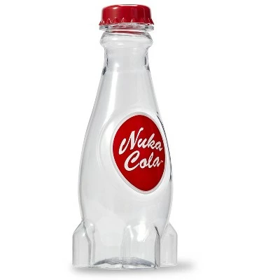 - FUN DESIGN: Clear water bottle is molded to look like a refreshing bottle of Nuka Cola!, complete with logo and “bottle cap” lid!