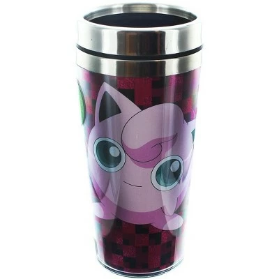 Show off your favorite Pokemon character with this officially licensed travel mug by Just Funky! This 16 ounce mug features a quality image of everyone’s favorite Pokemon, Jigglypuff. Comes complete with a non-spill metal lid. Hand wash only. Not dishwasher safe. Do not microwave.