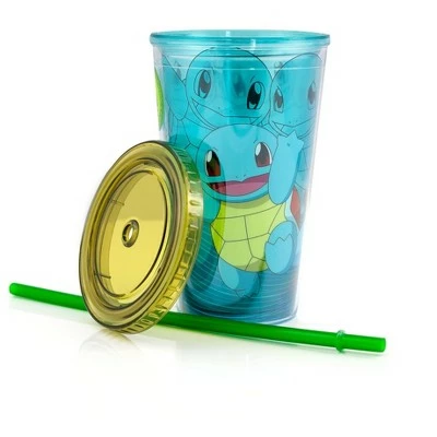 Show off your love of Pokemon with this officially licensed carnival cup by Just Funky! Clear blue plastic cup with green straw and screw down lid holds approximately 18 ounces and features a fun image of Squirtle! Sure to make a great gift for your favorite Pokemon fan! Not dishwasher or microwave safe. Hand wash only.