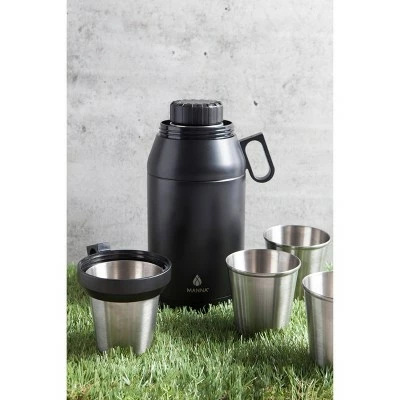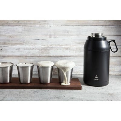 The Stack Growler features four stacking 12oz cups, making it the perfect accessory for sharing. Simply remove the top collar to release the cups and gain access to the screw-top cap. The high capacity double-wall stainless steel vessel coupled with the double handle loops for carrying make the Stack Growler a must-have for outdoor activities with friends and families. Beverages will stay hot for 12 hours and cold up to 48 hours with ice. Lid and stainless steel cups are top-rack dishwasher safe. Stainless steel vessel is hand wash only, no abrasives.