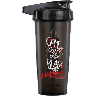 The Performa Activ 28 oz. Horror Villain Collection Shaker Cup is officially licensed! Every Performa Shaker Cup is built to deliver against any demands it will endure. Mix, pour, and store all in the same container! The Actionrod Technology amplifies the kinetic energy in the shaker cup for the ultimate smooth mix. It features duraplex shatter-resistant plastic to ensure maximum impact and shock absorption. Finally, the extra-last UV ink is designed to protect from fading and chipping. 28 oz. capacity. 100-percent Leak-Free. BPA-free, food grade plastic. Lightweight and portable with extra wide mouth. Dishwasher safe.