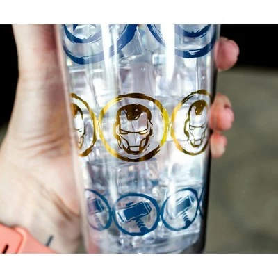 - SUPER DESIGN: Clear cup features colorful icons of popular Marvel superheroes, including Iron Man, Captain America, Black Widow, and Thor.