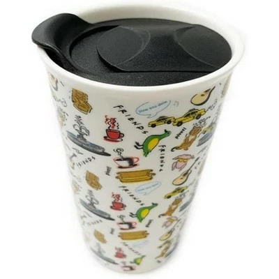 - TRENDY DRINKWARE: Fun travel mug features an all-over design of FRIENDS Doodle icons!