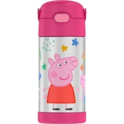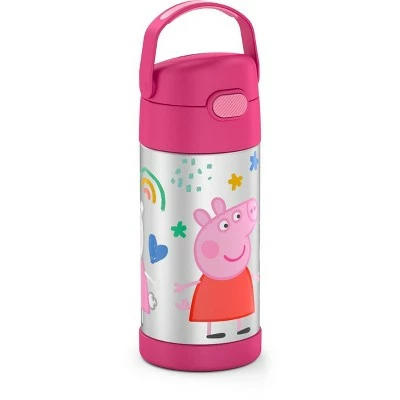 The FUNtainer® 12oz Vacuum Insulated Stainless Steel Water Bottle with Straw keeps drinks cold for up to 12 hours. The double wall stainless steel construction is built to handle drops, dings and assorted roughhousing. Includes an integrated carry handle with soft-touch grip, making it easy for kids to carry with them throughout the day. Help keep germs away with the hygienically covered silicone straw which is removable for easy cleaning. To clean, you can pop your FUNtainer water bottle in the dishwasher; however hand washing is recommended. Not for use with hot liquids.