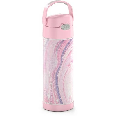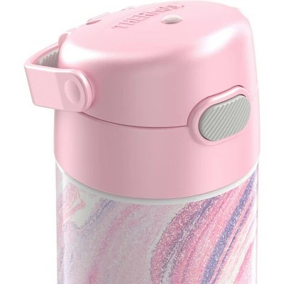 The FUNtainer® 16-ounce Vacuum Insulated Stainless Steel Water Bottle with Spout keeps drinks cold for up to 12 hours. The double wall stainless steel construction is built to handle drops, dings and assorted roughhousing. Includes an integrated carry handle with soft-touch grip, making it easy for kids to carry with them throughout the day. Keep germs away with the hygienically covered drinking spout. To clean, you can pop your FUNtainer water bottle in the dishwasher; however washing by hand is recommended.