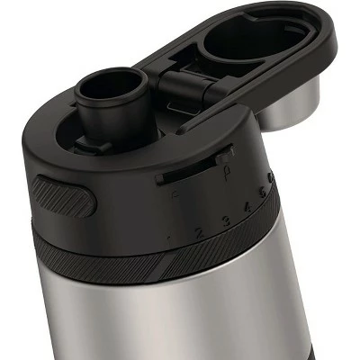 The Thermos 18 oz. Guardian Stainless Steel Vacuum Insulated Water Bottle keeps you in the game. Drinks stay cold for up to 14 hours and features an easy-grip silicone sleeve. Equipped with a hygienic covered spout, locking cap and carry handle, this bottle has you completely covered from uphill hikes to downtown treks. You can even keep track of your daily intake thanks to the rotating hydration meter! Dishwasher safe. Please Note: Not for use with hot liquids.