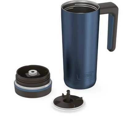 Recharge your sense of adventure with the 18oz Stainless Steel Travel Mug from the GUARDIAN COLLECTION BY THERMOS. From city streets to mountain trails, this mug keeps drinks protected everywhere you go. Thermos™ vacuum insulation technology keeps coffee and tea hot up to 5 hours. Cold drinks stay icy for up to 14 hours. A comfort-soft handle fits perfectly in your hand and a slide lock lid prevents spills and leaks. Made with minimal parts that are dishwasher safe and easy to clean. Just fill it up and you’re ready to take on the day.