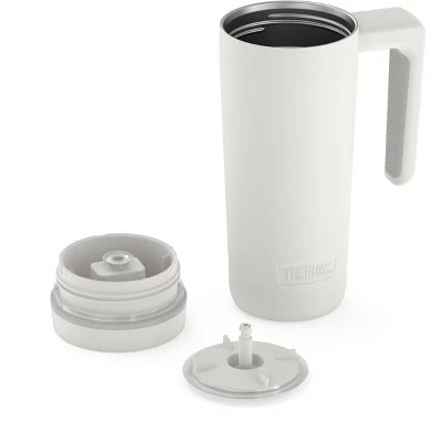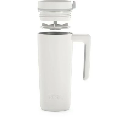 Recharge your sense of adventure with the 18oz Stainless Steel Travel Mug from THERMOS BRAND. From city streets to mountain trails, this mug keeps drinks protected everywhere you go. Thermos vacuum insulation technology keeps coffee and tea hot up to 5 hours. Cold drinks stay icy for up to 14 hours. A comfort-soft handle fits perfectly in your hand and a slide lock lid prevents spills and leaks. Made with minimal parts that are dishwasher safe and easy to clean. Just fill it up and youβre ready to take on the day.