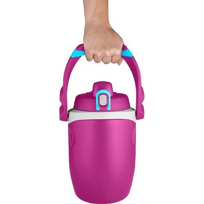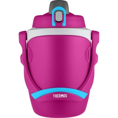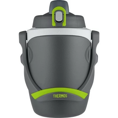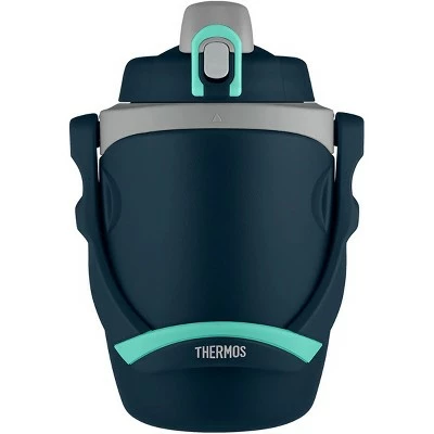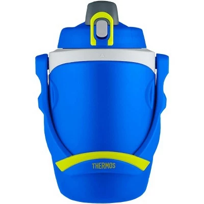 The Thermos 64 oz. Foam Insulated Flip-Up Lid Hydration Water Bottle is the ultimate hydration bottle with an impressive capacity to hold your favorite cold drink. Sip it, chug it, and swig it all day long without needing to refill all the time. The double wall foam insulation keeps your drinks cold for up to 12 hours. You can operate the push button lid with just one hand, making it easier than ever for you to quench your thirst quickly. The lid locks for secure transport and the carrying handle allows for easy transportation. Made with BPA-free materials and features an ergonomically-designed body for a comfortable grip. Please Note: Not for use with hot liquids.