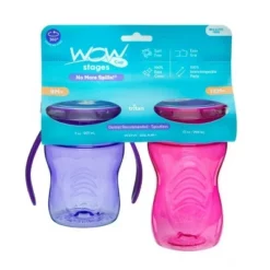 New WOW Cup Stages combines the best of both worlds! Features one 7oz Baby Cup and one WOW 10oz Kids Cup. Both cups feature the WOW 360-degree, Even-Seal drinking edge which eliminates messy spills and helps develop the oral and motor coordination to transition to regular open cups sooner, All parts are interchangeable too! Spill-Free, dishwasher safe, easy to clean and assemble. Made with bright and vibrant TRITAN Plastic that is BPA/PVC free. Age graded 9m+ and 12m+. Makes a great starter set or shower gift.